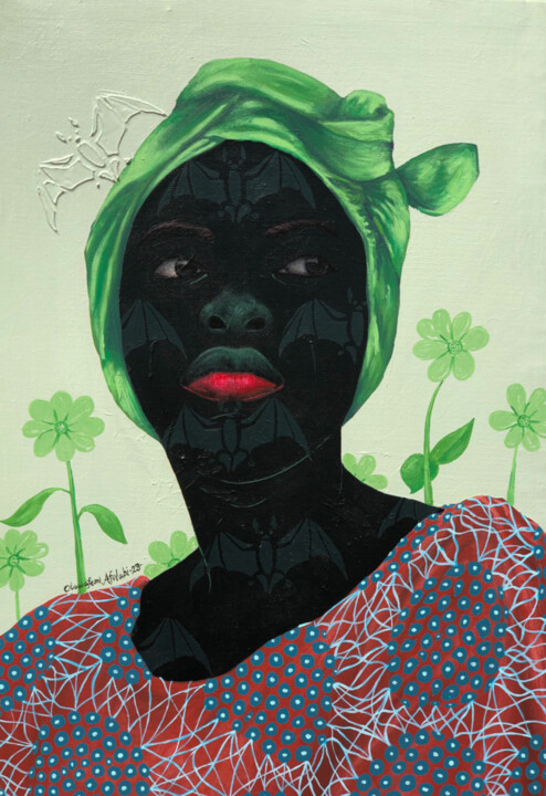 Я услышал плач ребенка, он был в отчаянии, поэтому я обернулся. Я сразу узнал его, он был на руках у матери, на лице которой была отмечена страдальческая гримаса терпения, сопровождавшаяся нежным жестом поглаживания ребенка по головке, чтобы его утешить и, наконец, успокоить. Я описал картину Олувафеми Афолаби «Несравненная», в которой затрагивается одна из самых популярных тем в истории искусства, символизируемая множеством итальянских Мадонн, готовых прижимать своих детей к груди. Но было что-то, чего я никогда раньше не видел. Не только платье женщины несет тот или иной узор, но и зеленая кожа нарисованных предметов, в которой реализуется навязчивое повторение черт некоторых летучих мышей. Итак, чтобы понять, что мы видим, необходимо будет представить художника и его точку зрения: Олувафеми Афолаби, нигерийский художник по специальности живопись, графика и прикладное искусство, рассматривает портретную живопись как жанр, в котором можно выявить его типичную животную символику, реализованную в виде рукокрылых летучих мышей. Известно, что этих существ в некоторых африканских цивилизациях понимают за их способность видеть в темноте как существ, способных воплощать разум и души умерших. Кроме того, им комфортно и в небе, и под землей, оказываясь амбивалентными, как и мать художника, сумевшая также принять на себя роль безвременно ушедшего отца-мужа. Однако послания, передаваемые мазками художника, разнообразны, поскольку он рассматривает искусство не только как средство прославления природы или истории своей семьи, но и как средство рассказывать истории своего сообщества, обращая особое внимание на женское измерение, из которого красота Возникают борьба, любовь к детям и увлекательные эмоциональные отношения.