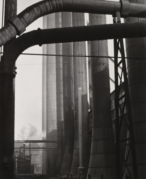 Трубы и трубы: Armco, Мидлтаун, Огайо, 1922 г. Здания, 9,4 x 7,5 дюйма / 23,9 x 19,1 см. Центр творческой фотографии Калифорнийского университета в Санта-Круз, Смитсоновский институт, Музей Гетти, Музей искусств округа Лос-Анджелес.
