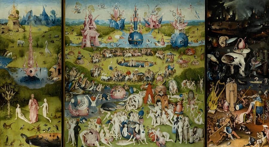 От греха прелюбодеяния до святой страсти Божественной Любви — весь спектр и масштаб любви мы видим в этом триптихе — от Афродиты Урании до Афродиты Пандемос. Святые, грешники, праведники, короли и первые люди — все они воплощены в одном человеке и всех их объединяет одно лицо.