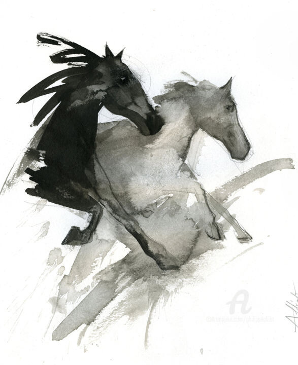 Конкуренция и динамичность «неполных» лошадей, созданных художником Artmajeur Филиппом Аллие, оказывается в соответствии с одним из самых известных экспериментов, опять же в отношении техники рисования, проведенным Анри де Тулуз-Лотреком. В то же время лошадь-повстанец 032 резко контрастирует с явно более статичным шедевром того же мастера, а также с шедевром Леонардо да Винчи. Говоря о бегущей лошади, французский мастер создал этот предмет в «Листе набросков» (ок. 1881 г.), графите, на котором буржуазная дева продолжает прыгать через барьеры верхом на своем коне, намереваясь прыгать в движении, которое повторяется в импульсе. двух минутных, проворных псов. Динамизм, который отличает как «Лист набросков», так и художественные чернила Artmajeur, перестает существовать в «Женщине и мужчине на коне» (1879-81), рисунке Тулуз-Лотрека, в котором обнаруживается как влияние первый мастер художника, спортсмен Рене Принсто, и влияние модных деятелей, которые Анри, возможно, наблюдал из родового поместья в Альби. К неподвижности «Женщины и мужчины верхом на лошади» присоединяются «Этюды лошадей» с серебряной иглой на синей бумаге Леонардо да Винчи, гения, который также изобразил рассматриваемое млекопитающее более динамично, как видно из рисунков, сделанных в контекстах сражений, а также в отдельных фигурах коней и коней и всадников.