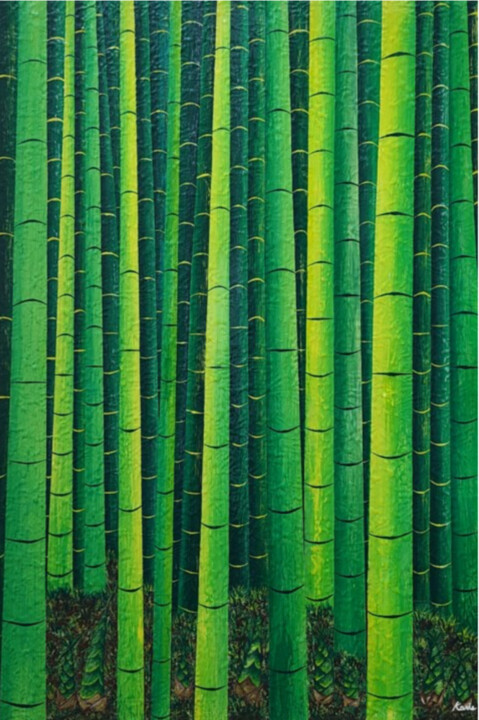 Картина Со Хён Ким «Бамбуковые канавки2» (2022) мастерски сочетает в себе акрил и штукатурку на холсте, создавая текстурированное трехмерное изображение бамбука. В произведении использованы зеленые цвета, чтобы изобразить бамбук таким образом, чтобы передать как визуальную, так и тактильную глубину. Гравируя текстуру и используя цветовой контраст на этих гравюрах, Ким передает суть устойчивости и приспособляемости бамбука. Это произведение искусства глубоко перекликается с темами Магха Пуджи, посвященной важной встрече в роще Векувана, месте, отличающемся спокойной бамбуковой обстановкой. Бамбук на картине Кима символизирует безмятежную среду, идеальную для медитации и духовных размышлений, воплощая в себе достоинства выносливости и гибкости, которые являются центральными на пути просветления, празднуемом во время Магха Пуджи.