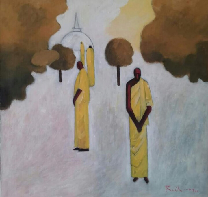 «Ясность ума. В поисках мира» (2023) канадского художника Бэзила Курея — это созерцательная картина акриловыми красками на холсте, на которой изображены четыре буддийских монаха, гуляющих по храмовому саду и глубоко поглощенных чтением книги. Безмятежные выражения лиц и медитативные позы монахов отражают их внутреннее стремление понять учение Будды. Простота картины с преобладающим белым оттенком подчеркивает ее глубокий смысл и вызывает чувство покоя и ясности. Изображая приверженность монахов обучению и созерцанию, работы Курэя воплощают суть сближения наследия буддийского фестиваля и его современной актуальности.