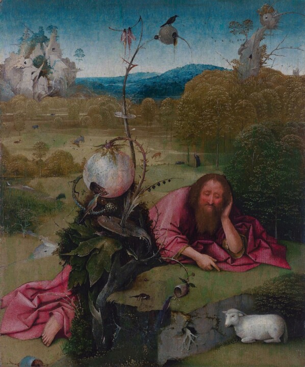 Иероним Босх, Святой Иоанн Креститель в медитации , ок. 1489. Масло, панель, 48,5х40 см. Музей Ласаро Гальдиано, Мадрид.