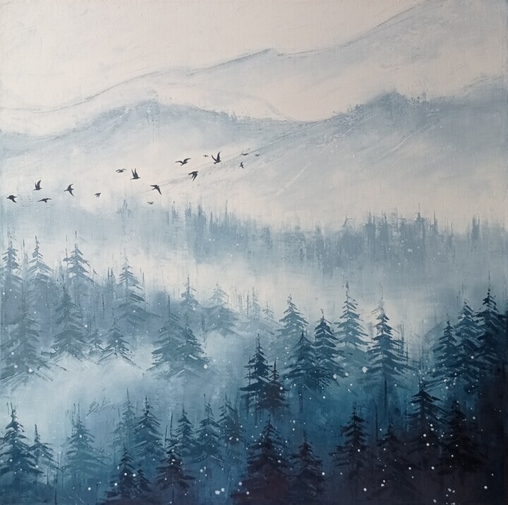 Виктория Кернер (Виктория Кернер), Первый снег , 2022. Холст, масло, 50 х 50 см.