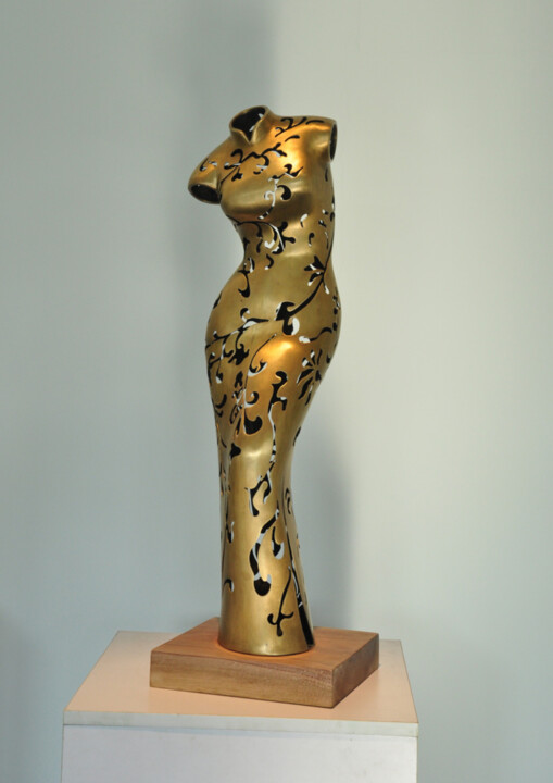 Эту скульптуру можно интерпретировать как синтез двойственности, которая определяет роль азиатских женщин на протяжении всей истории и в современном обществе. С одной стороны, ее стройная и гармоничная форма напоминает традиционный идеал грации и скромности, характерный для патриархальных обществ, которые на протяжении веков считали женщин хранительницами дома и семейной морали. С другой стороны, гравюры и отверстия в бронзовой поверхности предполагают продолжающуюся трансформацию: современные азиатские женщины, сохраняя связь со своими культурными корнями, постепенно переопределяют свою роль в обществе, добиваясь успехов в образовании, рабочей силе и политике.