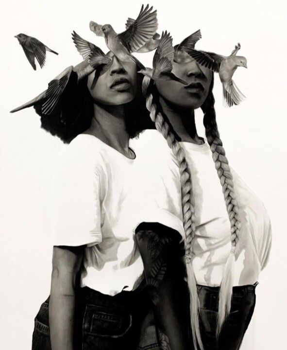 Картина «Раненые птицы » (2023) Ричелли Оливейры прекрасно отражает противоречия современных латиноамериканских женщин. На картине изображены две женщины, стоящие рядом, объединенные узами солидарности. Их внешность и поза предполагают внутреннюю силу, но больше всего бросается в глаза присутствие птиц, скрывающих их лица, словно скрывающих их личности или символизирующих бремя, которое они несут.