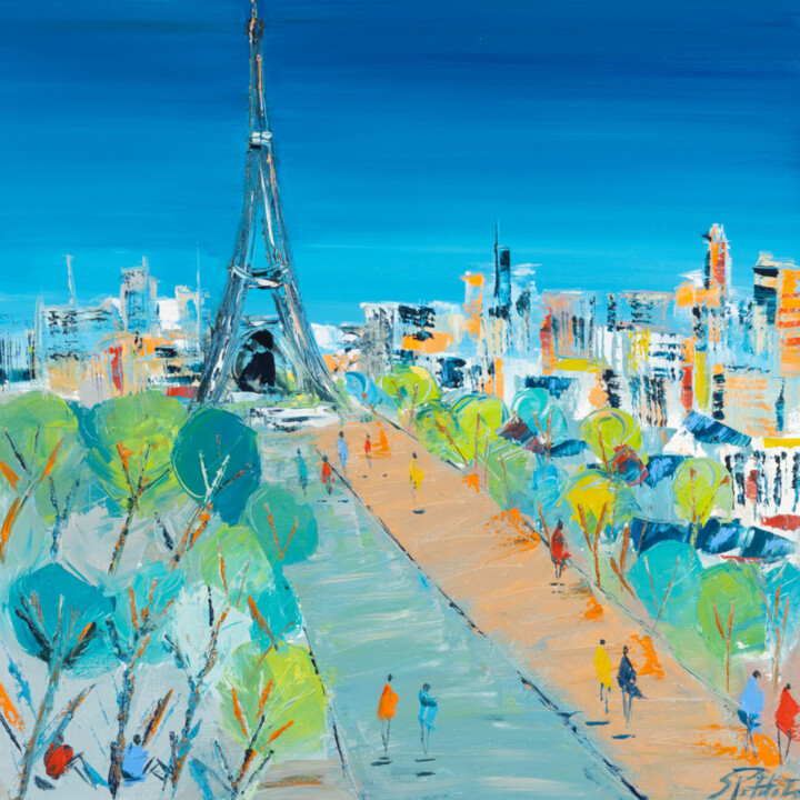 «Проезжая через Марсово поле в Париже с его символическим памятником — Эйфелевой башней». Так Софи Пететен определяет контекст, давший жизнь ее картине, результат особой страсти художницы к Парижу и его башне, значительно усиленной окружающей его зеленью. Художница Artmajeur признается, что находится под вечным заклинанием, стремясь перенести свой разум вместе со своим телом и кистью часто в упомянутые выше места, где она имеет привычку гулять, когда может. В таких случаях она наслаждается панорамным видом, расслабляясь, поставив ноги на траву и высоко подняв голову, глядя в другую сторону, в сторону башни. Из мгновений счастья могут возникнуть только радостные и беззаботные произведения, направленные на то, чтобы разделить со зрителем безмятежные и незабываемые мгновения, имеющие точное и уникальное место: Париж и его Железная Леди. Искусство Софи Петтен действительно призвано распространять радость жизни посредством сочетания цветов и материалов, которые могут создать счастливую и поэтическую симфонию, результат свободных жестов, направленных на напоминание об удовлетворении мечтаний и воспоминаний, которые часто охватывают мир природы. но также современная городская жизнь и повседневная жизнь.