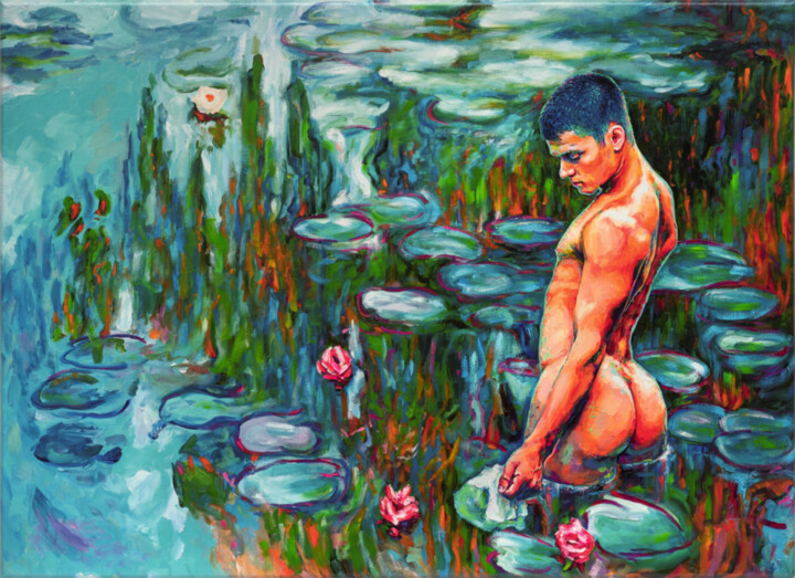Однако перспектива Балбышева радикально порывает с традицией, поддерживаемой предыдущими моделями импрессионистов, помещая обнаженную мужскую фигуру в центр сцены. Художник не только черпает вдохновение из кувшинок Моне, но и использует их в качестве фона для размышлений о репрезентации мужского тела в искусстве. Мужская форма, редко исследуемая как чувственный субъект в искусстве по сравнению с женской обнаженной фигурой, здесь подчеркивается и восхваляется. Таким образом, работа Балбышева — это не просто дань уважения к кувшинкам Моне, но также критика и переосмысление того, как мужская чувственность и красота исторически недооценивались в искусстве.