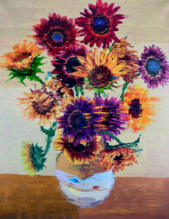 Первая картина Джерри Чаплески сразу же вызывает в памяти знаменитый шедевр «Подсолнухи» вышеупомянутого голландского мастера. Однако художник Artmajeur представляет современный подход, манипулируя масляной краской, создавая фактурный и динамичный эффект, отличающийся от старых мазков Ван Гога. Эта техника придает цветам почти цифровой вид, как будто формы были деконструированы, а затем собраны заново таким образом, что цветы кажутся парящими на фоне.