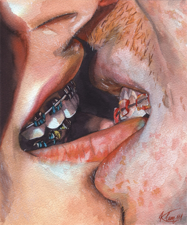 В этом нежном объекте присутствует множество оттенков персикового цвета, целью которого является увековечить крупный план укуса, который мужской рот прикрепляет к рту женщины, в вероятном моменте паузы между двумя поцелуями. Художника интересует только это. Только рты, их детали, кожа, ее оттенки, волосы, ее белые отблески и зубы цвета металлических зубных брекетов. В конце концов, разве персиковый цвет не цвет тех, кто решил мирно наслаждаться людьми и местами, которые они любят? Вот что имел в виду Pantone! К этому осознанию художник добавляет свои мудрые размышления: «Распространенный вид несчастья — это невозможность получить именно то счастье, которое вам нужно. Что касается истории искусства, то тема поцелуя, хотя и в гораздо более широком масштабе, затрагивалась Анри де Тулуз-Лотреком как в «Поцелуе» (1892), так и в «Поцелуе в постели» (1892). -93), работы, в которых кожа изображенных персонажей с оттенками персика запечатлена в совсем другом контексте. В своей реалистической фреске парижского общества французский мастер запечатлел и моменты близости между проститутками, женщинами, несомненно уставшими от удовлетворения самых унизительных мужских удовольствий, которые находили утешение в более подлинной гомосексуальной любви.