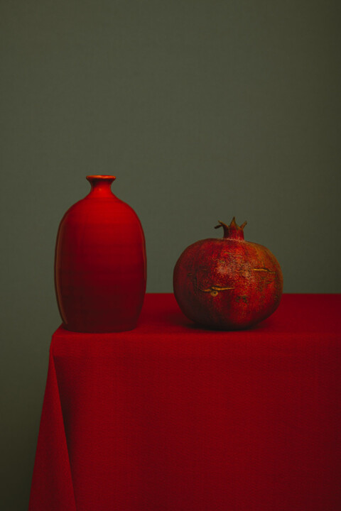 В дополнение к сказанному до сих пор стоит отметить, что наше внимание притягивается и к тому, что доставляет нам удовольствие или делает нас счастливыми, до такой степени, что практически невозможно не сосредоточить взгляд на лакомствах, расставленных на столе. натюрморта. Это становится неотразимым, когда оно окрашено в красный цвет, вероятно, побуждая зрителя протянуть руку и схватить то, что он видит! Именно это можно найти в «Красной бутылке» Арнольда Марьяшина — фотографии, на которой, поразмыслив о том, что же может содержаться в кувшине, будь то вино, вода или что-то еще, я обнаружил, что жадно зациклен на гранате, внезапно поддавшись искушению взять откусить, а затем оставить его «искалеченным» на месте.