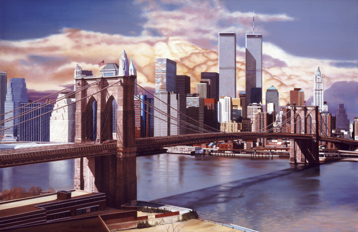 Живопись: Реализм Микетти предлагает нам точное воспроизведение вышеупомянутого моста, а также культового района Манхэттена, формирующегося на заднем плане, узнаваемого также по наличию архитектурных элементов, которые, к сожалению, сегодня больше не существуют: башен-близнецов. На самом деле, как указывает сам художник, работа верна времени, в которое она была задумана и создана, а именно далекому 1999 году. Однако глубокий интерес к сюжету и рассматриваемому городу становится явно очевиден, когда мы почитайте о художнике Artmajeur. Микетти действительно является американским художником, прошедшим обучение в Школе промышленных искусств на Манхэттене, в творчестве которого часто присутствует предрасположенность к ностальгическим темам, описанным в полном соответствии с языком современного реализма. Эти стилистические элементы достигаются с помощью чрезвычайно точной техники, направленной на то, чтобы художник сосредоточился на одной и той же теме в течение нескольких месяцев подряд.