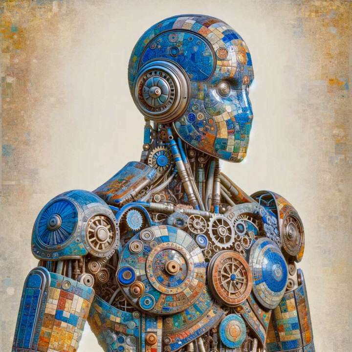 Работы художников Artmajeur, которые я выбрал, демонстрируют различные современные подходы к мозаичному искусству, некоторые из которых более верны оригинальному исполнению жанра, чем другие. Начнем с того, что мозаичное искусство — это полихромная техника, достигаемая с использованием фрагментов различных материалов, традиционно гальки, керамики, мрамора, квадратов песчаника и стекла, часто украшенного золотом и драгоценными камнями. Что касается опор, то их обычно изготавливают из туфа, дерева или стекла, а создание предполагает выполнение предварительной конструкции, на которую крепятся тессеры (мозаичные плитки). Альтернативно, тессеры можно прикрепить в обратном порядке на временной опоре, которая позже будет заменена окончательной. Что касается работы Давыденко, то видно, что она соответствует описанным выше материалам и методу исполнения, которые в данном конкретном контексте использовались для передачи образа коллеги-художника. Андрей Давыденко, украинский художник, родившийся в 2001 году, часто использует технику мозаики, поскольку, по его словам, цель его искусства — исследовать различные предметы разными способами, часто включая изучение архитектурных элементов его страны.