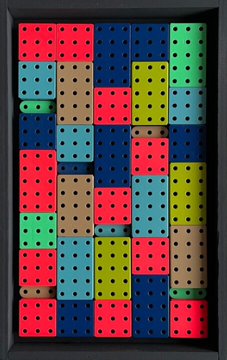 Это произведение искусства состоит из металла, акрила, чернил и дерева и в своей оригинальной концепции напоминает типичное переплетение мозаичных фрагментов, часто рассматриваемых как компоненты картин, архитектуры и, в данном конкретном случае, скульптуры. Каковы некоторые древние примеры того, что только что было проиллюстрировано? Чтобы найти отдаленные мозаичные скульптуры, мы можем обратиться к цивилизации ацтеков, которая между 13 и 16 веками украшала маски и ритуальные предметы бирюзовой мозаикой. Если приблизиться к нашему времени, то хорошо известные примеры включают мозаичные скульптуры Антонио Гауди, Лучио Фонтана, Мирко Базальделлы, Атоса Онгаро, Алессандро Мендини и многих других. Возвращаясь к Artmajeur, художник XaRo, тесно связанный с миром графического дизайна, создает работы, в которых есть как декоративные, так и концептуальные элементы, материализованные в виде устаревших игрушек, призванных пробуждать детские воспоминания. Кроме того, мы можем интерпретировать другие работы производства XaRo как дальнейшие способы интерпретации и модернизации техники мозаики, узнаваемой по простому сопоставлению и сборке частей, которые, объединяясь в единое изображение, создаются с помощью цифрового искусства.