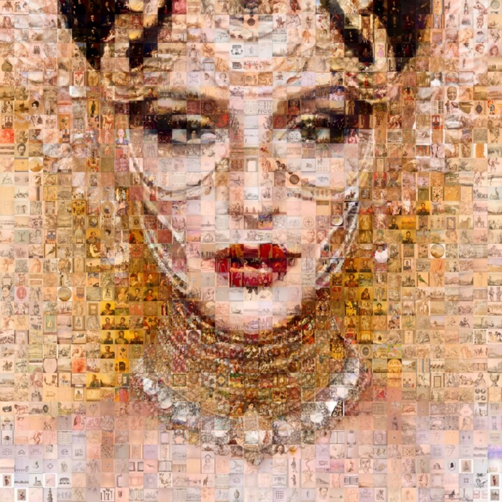 На это произведение необходимо взглянуть в свете слов художника: «За более чем двадцать лет у меня накопилось феноменальное количество снимков наклеек, граффити и жетонов, найденных тут и там на улицах. Сегодня я использую эти работы. , собранные в основном в европейских и американских городах или просто в окрестностях Лозанны, для создания мозаик, изображающих очаровательных женщин.С помощью этой работы я намерен прославить женскую красоту, рассматривая ее как праздник всех граней, которые делают женщин красивыми и сильными. » Теперь можно сказать, что техника мозаики развилась, расширившись за счет включения цифрового искусства, где вместо выбора и раскрашивания плиток делаются точные фотографии. Эти фотографии позже отбираются для создания единого видения, готового рассказать нам заранее обдуманную историю, которая больше не фрагментирована. Говоря о Винсенте Акерманне, швейцарском художнике, родившемся в 1983 году, он черпает вдохновение в культуре хип-хопа и ее графической вселенной, к которой он изначально подошел через живопись. Лишь позже он осознал свои способности к фотографии, которую он сочетает с цифровым искусством, которое в основном использует для создания коллажей с изображением элегантных женщин.