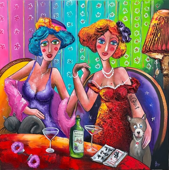 Джоди в своих акриловых красках на холсте увековечила женское соучастие, ту врожденную любовь, которая часто расцветает между женщинами, реализуясь в чувстве взаимного восхищения и соучастия, берущего свое начало в одинаковой чувствительности, сходном мировоззрении, а также обмен одним и тем же опытом. Такое чувство, кажется, развилось в «мирском» событии, в котором женщины участвуют, пожимая руки, извилисто переплетая конечности, как две влюбленные змеи. Причины их интеллектуальной близости широко обнаруживаются, на самом деле, благодаря тщательному анализу деталей творчества Artmjeur Artist выявляются те же интересы, которые объединяют двух дам, касающиеся: моды, драгоценностей, животных, вина и головных уборов всех виды. Если оставить в стороне более трансгрессивные детали, такие как наручники и татуировки, работа кажется напоминающей атмосферу «Синьоры », картины, созданной Берил Кук, на которой три мягкие женщины показаны в их повседневных досуговых мероприятиях, происходящих в многолюдном месте. клуб. Именно последняя британская художница, представительница наифского искусства, родившаяся в 1926 году, известна своей реализацией комических сцен, направленных на увековечение людей, которых можно встретить в повседневной жизни, в пабах, городских центрах и на самых разнообразных представлениях.