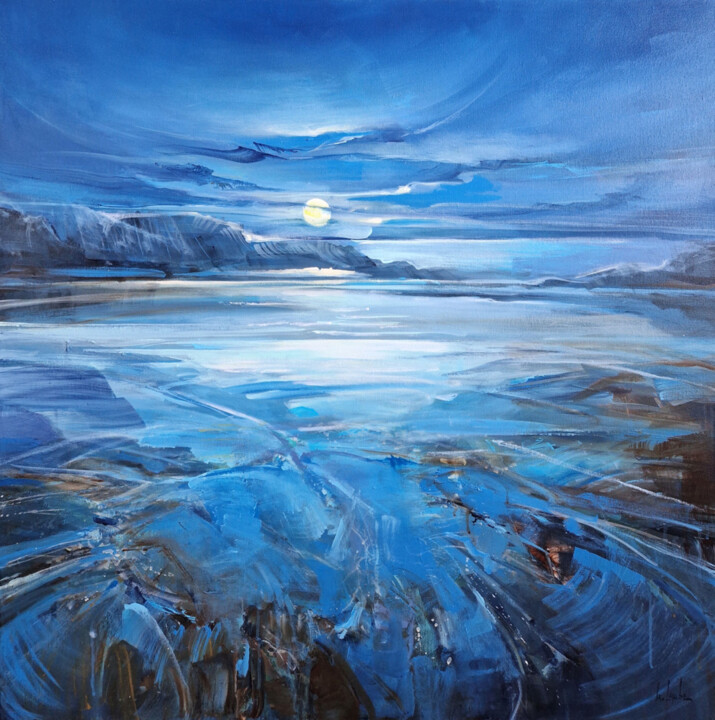 Название работы предполагает отсутствие тревожных шумов, а значит, и присутствие спокойствия, которое доминирует в идиллической композиции, в которой море успокаивается, позволяя нам мирно наблюдать за луной, которая одновременно находится над ним и высоко в небе за пределами моря. далекие горы. На самом деле все создано для созерцания ночи, поскольку мы оказываемся в голубом «монохроме», где сливаемся между небом и землей, руководствуясь еще раз присутствием спутника, единственный свет которого позволяет нам различать формы творения. . Что касается техники живописи, стиль импрессионизма проявляется в линейных движениях, используемых для изображения нежных морских и ветреных течений, а также в более быстром исполнении деталей на расстоянии. Создательница «Тихой ночи» Ирина Лаубе отличается образным подходом импрессионистической натуры, всегда готова интерпретировать различные пейзажные сюжеты, порой граничащие с деталями с более абстрактным оттенком. Лаубе — русская художница, проживающая в Германии, которая первоначально обучалась реалистической практике, а затем исследовала новые методы, стили и материалы, что, тем не менее, заставило ее отдать предпочтение природному сюжету во всех его проявлениях, призванному вызывать воспоминания и эмоции, ссылаясь как на прошлое и настоящее.