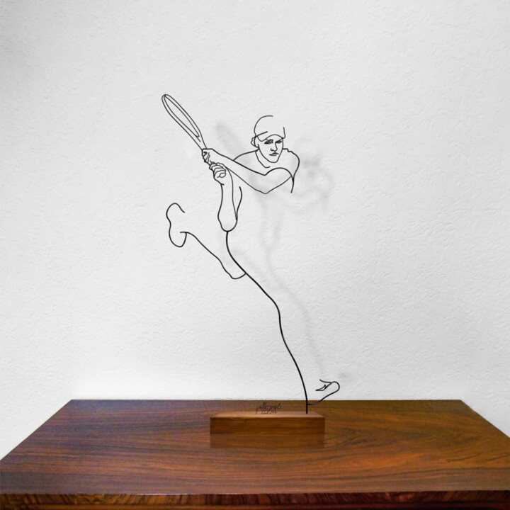 Работа с ее четкими и четкими линиями передает все напряжение и плавность движений чемпиона. Простота проволоки контрастирует со сложностью атлетического жеста, создавая одновременно динамичное и минималистское изделие.