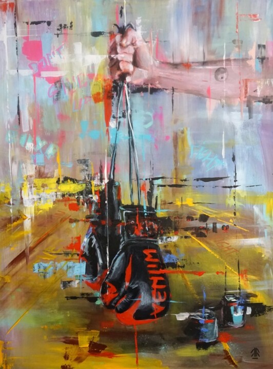 Начиная с первой работы, картина, созданная акрилом на льняном холсте, изображает руку боксера, сжимающую боксерские перчатки, символизируя силу и решительность. На заднем плане яркие цвета и абстрактные штрихи напоминают хаос и энергию места, похожего на кольцо. С другой стороны, более откровенная скульптура из проволоки, дерева и металла изображает теннисиста Янника Синнера в знаковый момент удара слева. Лицо теннисиста хоть и стилизовано, но действительно узнаваемо и добавляет нотку индивидуальности и праздника спортсмену.