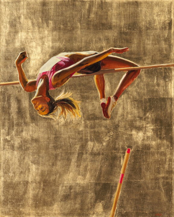 «Прыжок в золото» Анатасии Марковской — холст, масло, являющийся частью ее «золотых работ», серии, призванной подчеркнуть современную тенденцию следования здоровому образу жизни как новой религии. Изящество и свет, характеризующие эту тематическую интерпретацию, намекают на внутреннюю красоту спортсменов, а также на элегантность их поз. Эти позы навеяны сюжетами старых советских спортивных фотографий, хотя в живописном варианте золотой фон, аналогичный тому, на котором написаны иконы, подчеркивает культ спортивного тела и почти мифологическую красоту спортсмена. Таким образом, «Прыжок в золоте» изображает динамический момент прыжка, захватывая тело спортсмена в подвешенном состоянии, на пике чистоты и грации движений.