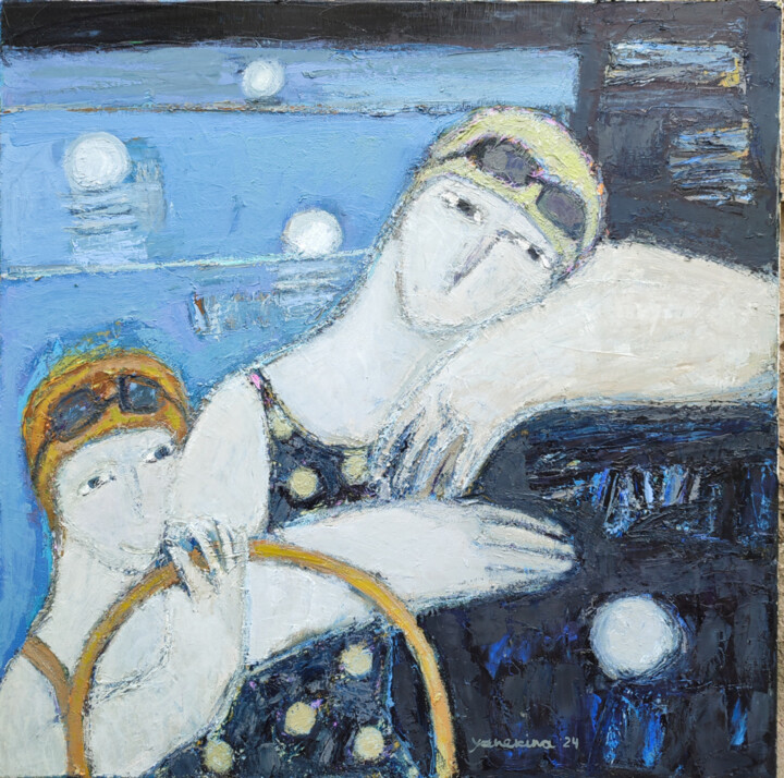 Пришло время поговорить о водных дисциплинах, таких как синхронное плавание и водное поло, изображенных в серии из трех картин, посвященных пловчихам. Эти работы, созданные современной литовской художницей Натальей Янекиной, исследуют грацию и красоту спортсменок, запечатлевая интимные и значимые моменты их спортивной деятельности.
