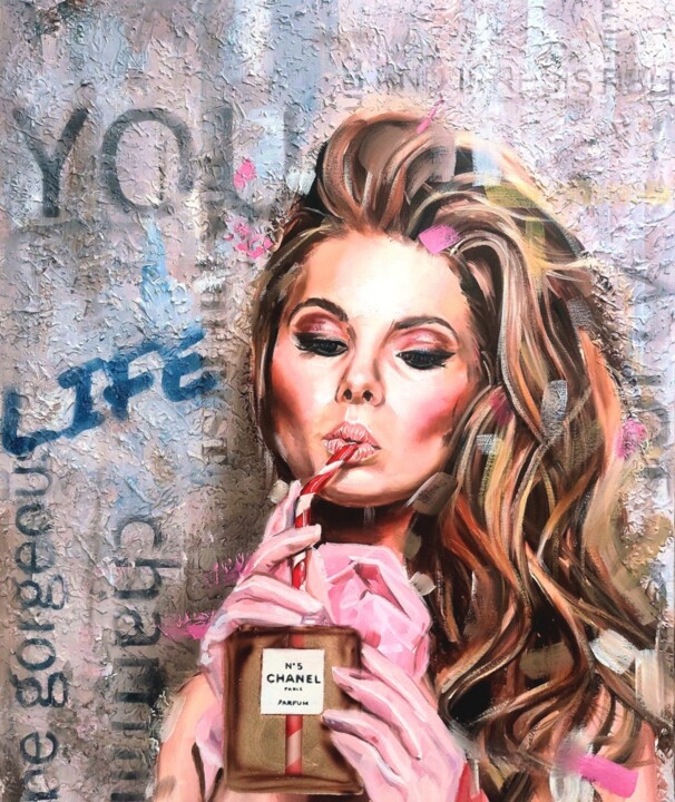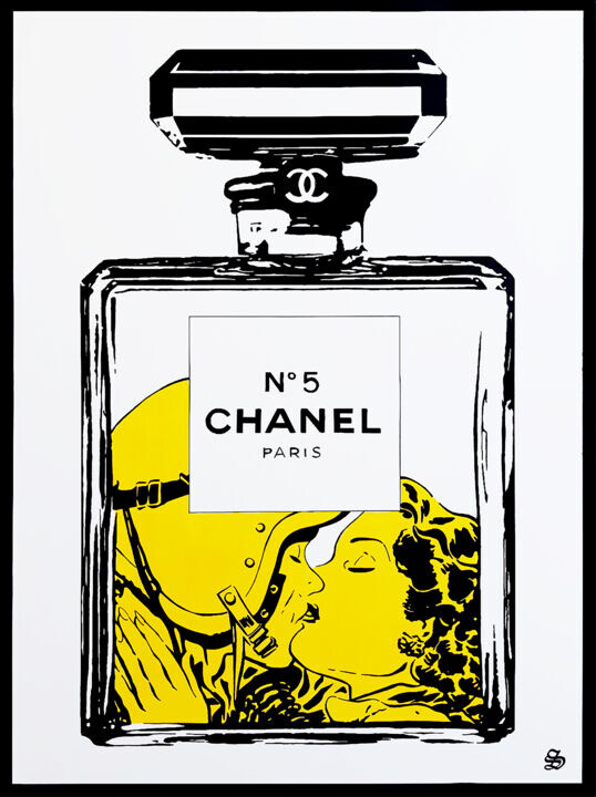 Именно вышеупомянутая навязчивая потребность разделить свою легкость, а также стремление кристаллизовать аромат обладания сегодня хорошо иллюстрируются Chanel (2021), гравюрой на холсте, выполненной вручную The Miaz Brothers, дуэтом художников из Ломбардии, известным своим творчеством. за время своего долгого исследовательского путешествия, включая фотографию, видео и живопись, они разработали новую технику, которая обновила подход к портретной живописи, поскольку его предметы, выполненные в основном с помощью аэрографа и акриловых красок, представляют собой размытые контуры, направленные на создание загадочных и вызывающих воспоминания изображений. Именно в этом смысле Chanel (2021) также бросает вызов зрительскому восприятию, избегая полной определенности, хотя силуэт культового парфюма теперь невозможно не различить, демонстрируя тотальную диффузность, утверждение и узнаваемость иконографии роскоши. В вышеупомянутом способе воспроизведения духов, которые, безусловно, ценя пример Уорхола, хотели изобразить свой культовый флакон, была «аналогично» реализована Chanel (2022), картина художника Artmajeur Ринальдса Ванадзиньша, выполненная смесью акриловых красок. и аэрозольная краска, нанесенная на холст, привела к текстурированной, динамичной и яркой поверхности, на которой гладкие мазки акриловых красок контрастируют с грубой текстурой аэрозольной краски, методы, разработанные для объяснения многогранных способностей художника выражать себя и овладевать различными материалами для того, чтобы создавать визуально яркие поп-произведения. В том же духе, что и Ванадзиньш, выразился другой художник Artmajeur, а именно Стэн, чей «поп-сюрреализм» проявляется в поцелуе, обретающем жизнь и форму в парфюмерной жидкости, детали, которая сразу же навела меня на мысли о Сальваторе Дали, мастере который дал свою особую интерпретацию известной бутылки, изобразив на ней свой «незавершенный» автопортрет, поскольку он должен был придать форму только глазам, бровям и усам каталонского художника. Возвращаясь к Стэну, современный французский художник выделяется своим уникальным стилем, направленным на объединение поп-арта и уличного искусства, направлений, которые переосмыслены с отчетливым вкусом к вселенной 1950-х и 1970-х годов, эпох, увековеченных в их иконах.