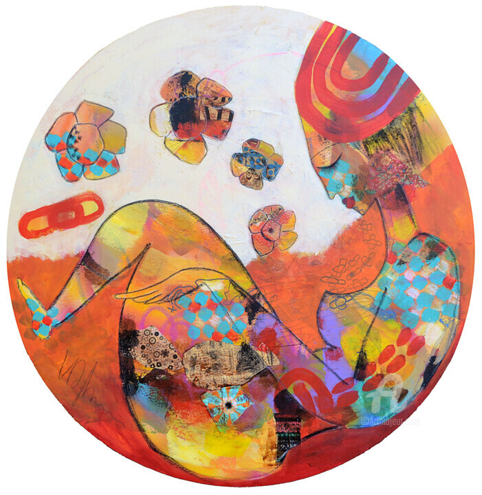 К сожалению, как и в случае с яйцом и курицей, мы не знаем, родился ли для картины Депадовой круг или изображаемый предмет первым, то есть представлял ли художник спящую женщину, собранную внутри круглой опоры, или то ли последнее заставило ее подумать о чучеле, аккуратно собранном на себе. Однако наиболее достоверным кажется «детский» стиль живописи, сразу напоминающий стилистические черты наивного искусства, художественного произведения, решительно отмеченного замечательным концептуальным упрощением, а также «скромной» исполнительской техникой, который, направленный на «игнорирование» общей перспективы и композиционных рамок, избегает любой связи с культурной и академической реальностью общества, в котором он производится. Здесь возникает вопрос: какому популярному наивному художнику можно «сопоставить» работы вышеупомянутого художника Artmajeur? Несомненно, тема сна объединяет «Отдых с цветами» с «Спящей цыганкой» Анри Руссо (1897), шедевром, увековечивающим на переднем плане женщину, одетую в длинное пестрое платье, которая намерена безмятежно спать, держа палку, которая лежит на земле. один из его концов на пустынной земле. В последнем засушливом окружении, в дополнение к нескольким объектам, мы видим фигуру льва, вероятно, намеренного охранять покой цыганки. Точно так же к «силуэту» главного героя картины Депадовой приближаются парящие цветы, вероятно убаюкивая своим ароматом сладкий сон чучела.