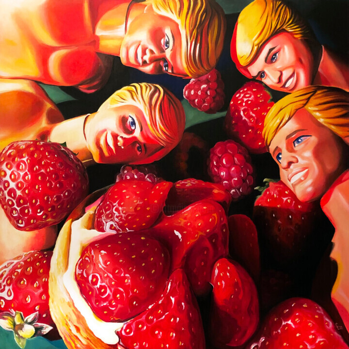 Мы говорили только о Барби, но что случилось с ее мужчиной? Акрил Лукаса на холсте отвечает на наш вопрос, изображая не менее четырех раз вышеупомянутую куклу, которая появляется обнаженной среди клубники и малины, изображая из себя некое лакомое искушение без злого умысла, поскольку, как известно, игривость не совсем по-мужски. .. Отбросив телесность и иронию, возникает возможность рассказать историю Кена, игрушки, представленной Mattel в качестве мужского аналога Барби в 1961 году, когда он также прославился своими прическами. говорят, что у первого экземпляра куклы были войлочные волосы, которые, к сожалению, выпадали при намокании. Однако несчастья Кена, похоже, достигли кульминации в 2004 году, когда было официально объявлено о его расставании с Барби, хотя я полагаю, что их отношения уже распались в 2009 году, когда Mattel объявила о своей новой линии Palm Beach, в которую вошла кукла Sugar Daddy Ken. предназначен для взрослых коллекционеров. …Однако счастливый конец наступил в 2011 году, когда вышеупомянутая компания по производству игрушек запустила масштабную кампанию для Кена, чтобы вернуть любовь Барби, закончившуюся официальным воссоединением двоих, которое произошло не случайно в День святого Валентина.