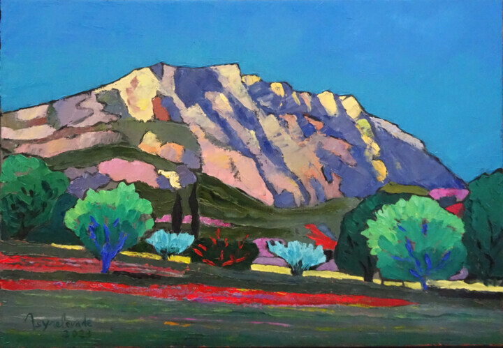 Провансальский художник Пейрелевад, изображая гору Сент-Виктуар, вступает в прямой диалог с высшей художественной традицией, поскольку цитирует Сезанна, представляя себя своего рода современным учеником известного французского мастера. В самом деле, художник-экспрессионист Artmajeur, чьи работы в основном направлены на изображение Прованса, а также Марселя, Средиземноморья и Востока, горячо убежден, что не может быть художника, который не усвоил бы, даже на бессознательном уровне, влияние самых знаменитых представителей мира искусства, в некоторых случаях даже в конечном итоге повторно предлагая некоторые конкретные стилистические, технические или предметные приемы. Во всяком случае, несмотря на то, что массив Сент-Виктори был «украден» у кисти Сезанна, художественная техника, предложенная Пейревадом, оказывается более близкой технике некоторых провансальских мастеров, узнаваемой самим живописцем в фигурах Монтичелли, Жан-Батист Олив, Марке, Камуан, Вердильян, Сейсо, Амброджани, Тончини и т. д. Тем не менее, благодаря именно сюжету, можно сравнить картину художника Artmajeur с одной из более «реалистичных» версий массива Сезанна. , например, под названием Мон-Сент-Виктуар, увиденный из Бельвю (1885 г.), в котором аналогичным образом цвета создают тяжелую и плохо обработанную светотень, расположенную на скалах и склонах холмов. Конечно, помимо сюжета, теней и обрамления, «фовистские» цвета, используемые Пейрелевадом, были направлены на оживление предмета, который, хотя и широко использовался историей искусства, получил в подарок новую жизнь и новый живописный интерес.
