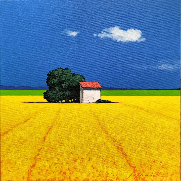 Я думал, что Джо Монделли, итальянский художник 1953 года рождения, часто берет свою машину, возможно, с мольбертом и кистями в багажнике, чтобы поехать и полюбоваться красивейшими и отдаленными пейзажами Бель-Паезе (Италия), мест, дающих жизнь. к следующему живописному изображению его видения: желтое, очень желтое поле, возможно, пшеничное, завершается морем с парусными лодками, и все это наблюдается с простора огромного неба. В живописном пространстве солнечного цвета размещается и небольшой домик, наслаждающийся тенью двух деревьев, что делает изображенное место ближе к нашему реальному опыту, несмотря на нереальную яркость красок. Можно сказать, что самый традиционный и реалистический жанр пейзажа, зародившийся в Золотом веке Голландии, возможно, был основан на образце хроматической яркости фовистов, хотя итальянский художник распределяет свои яркие цвета с беспрецедентной и тщательно продуманной точностью. делая его более упорядоченным и близким к повествованию о реальности. Эффект действительно сравним с «фотографией» с измененными цветами. Говоря о художнике, в начале его творческой карьеры он участвовал в изучении и экспериментировании различных художественных влияний с намерением интерпретировать их с помощью постоянно новаторских подходов, позже больше склоняясь к сюрреализму, символизму и экспрессионизму, главным образом связанным с философскими мысли. Возвращаясь к началу этого абзаца, мы можем в заключение связать каждый красочный пейзаж художника с настоящим итальянским пейзажем, переосмысленным через сугубо личную чувствительность, соединяющую различные художественные выражения.