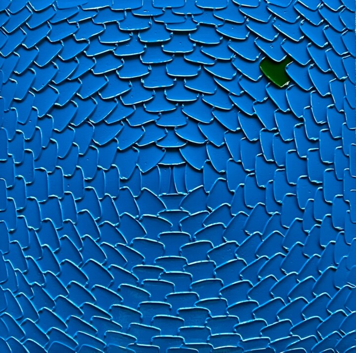 Картина маслом на холсте, выполненная рельефно и повторяющаяся по всей поверхности, создает однотонную синеву, прерываемую лишь черной «черепицей». Если мы забудем эту последнюю деталь, а также рассуждения о материальном искусстве, мы также можем описать произведение искусства такими словами: вдохновение исходит от цвета неба, стремящегося намекнуть на необъятность бесконечности, передаваемую с помощью один цвет, призванный создать иллюзию вечной повторяемости видения. Все становится открытым окном к свободе, которое дает возможность быть окруженным силой и концентрацией одного цвета. То, что только что было написано, было вдохновлено описанием картины Ива Кляйна «Голубой монохром» (1961), сделанным в МОМА в Нью-Йорке, с целью помочь нам понять частичное сходство живописи Айказа с картиной французского мастера. А как насчет живописного рельефа, который появляется только на примере художника из Artmajeur? Теперь бесконечность кажется более конкретной и больше не привязанной к чему-то нематериальному; мы как будто можем наконец прикоснуться к небу, зная, что оно навсегда останется бесконечным и недостижимым. Айказ Арзуманян – армянский художник 1977 года рождения, чья творческая деятельность охватывает живопись и пластику, однако он с энтузиазмом исследует новые техники и материалы. Благодаря неустанной преданности делу и постоянной приверженности своему искусству Арзуманян разработал особый стиль, наполненный жизненной силой и загадкой, воплощенный в жизнь благодаря повторению мелких хроматических деталей, которые выделяются среди монохромных изображений.