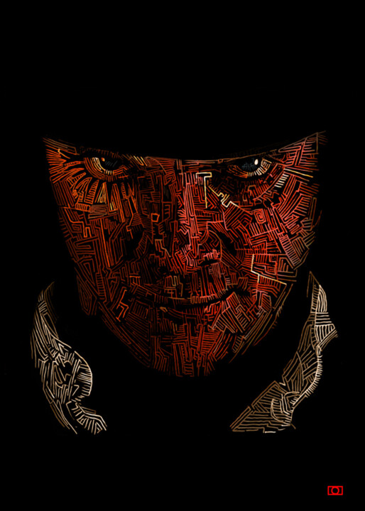 Эксцентричный и асоциальный Алекс Деларж Клемана Делеро обращает на нас свой самый знаковый взволнованный взгляд, принимая собственное подобие через повторение маленьких «лабиринтов» линий, которые из «механических» красок цифрового искусства непропорционально множатся на его лице, выстраивая его особенности со сложностью и гениальным повторением. Речь идет о главном герое фильма Стэнли Кубрика «Заводной апельсин», выпущенного в 1971 году и основанного на одноименном романе Энтони Берджесса, исследующего темы свободы воли, насилия и последствий общественного контроля. Одной из сцен, в которых эти темы достигают кульминации, является сцена изнасилования, в которой Алекс и его банда нападают и насилуют женщину, поя и танцуя под классическую музыку. В этом контексте аллюзия на нравственное разложение и насилие общества достигает самых абсолютных высот, что повторяется в похожей, но гораздо более мягкой форме в некоторых произведениях искусства, посвященных той же теме, в том числе, например, в картине Джамболоньи. Похищение сабинянок (1580-83), скульптура из Лоджии деи Ланци (Флоренция), призванная увековечить эпизод из древнеримской истории, известный как Похищение сабинянок, согласно которому Ромул, король и основатель города, похитили сабинянок, чтобы у римлян было с кем размножаться.