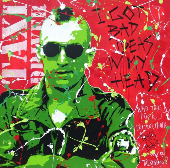 Крупный план Роберта де Ниро, цитаты из фраз из фильма и название фильма в унисон появляются на полотне Секама, превращая его в явный прославление одного из самых известных фильмов. Мои предположения подтверждаются собственными заявлениями художника в Artmajeur, где о его работах говорится: «Дань уважения Роберту де Ниро в фильме «Таксист». Почему Секама так привлек этот фильм? Какие скрытые смыслы он скрывает, а на самом деле передает зрителю? Фильм Мартина Скорсезе, датированный 1976 годом, рассказывает историю встревоженного и одинокого нью-йоркского таксиста, который все больше отрывается от реальности по мере того, как погружается в мир насилия, настолько, что приближает зрителя к темам отчуждения, одиночества. и психическое заболевание, которое некоторые интерпретируют как молчаливый комментарий к социальным и политическим проблемам того времени, включая упадок городов, коррупцию и войну во Вьетнаме. Говоря об истории искусства, с другой стороны, отчуждение и психическое заболевание, безусловно, являются частью художественного исследования Теодора Жерико, чей так называемый «Цикл отчужденного», датируемый 1822–1823 годами, переносит на полотно девиантную внутреннюю реальность, направленную в демонстрации того, что безумие на самом деле является болезнью, у страдающих которой есть отметины на лицах.