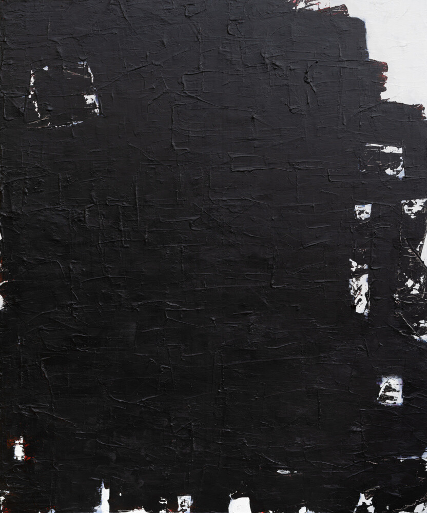 В частности, в «Черном разбитом зеркале» Александр Жоффруа использует черный цвет для исследования света и теней в монохромной серии под названием «Пигменты». Эта работа основана на инновационной технике, которая сочетает распыление и штукатурку на холсте, создавая рельефную поверхность, состоящую из тысяч маленьких квадратов. Эти квадраты отражают свет и создают динамический эффект теней и отражений, придавая глубину и движение черному цвету, который в зависимости от угла и освещения может казаться как матовым, так и светящимся. Становится ясно, что для Жоффруа этот оттенок является средством для исследования темноты и блеска вместе, фиксируя взаимодействие между материалом и светом.
