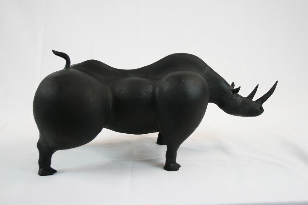Напротив, «Носорог» Роберто Барбути интерпретирует черный цвет как символ первобытной силы и животной жизненной силы. Итальянский художник, вдохновленный наскальными рисунками, лепит из терракоты, используя технику «коломбино», создавая фигуры, которые сохраняют духовную сущность представляемого ими вида. Несмотря на использование стилизованных и нереалистичных форм, важно отметить, что его скульптуры животных остаются совершенно узнаваемыми, источая силу и физическое присутствие. Черный цвет, нанесенный после обжига масляными красками, подчеркивает мускулатуру и могучую структуру объекта, придавая ему ауру величия.