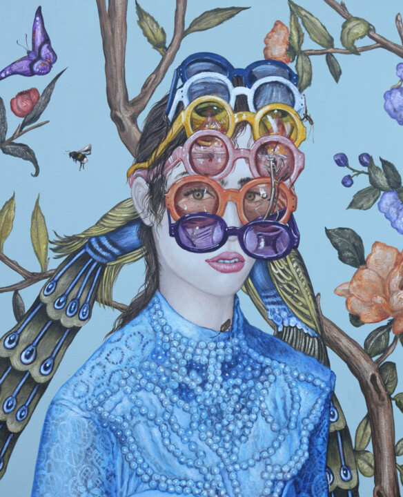 «Дама с павлином» (2024) Карлоса Гамеса де Франциско — это работа, которая бросает вызов традиционной портретной живописи, подрывая эстетические коды власти и роскоши посредством визуального взрыва сюрреалистических деталей. Ярко-голубой хлопок , доминирующий как на заднем плане, так и на роскошной блузке главной героини, становится символом переосмысленной изысканности, переосмысливая роскошь и красоту в современной интерпретации.
