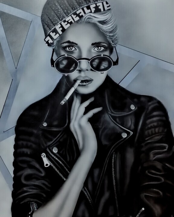 Предпочтительными методами являются аэрограф и уголь, всегда играя со светом, как это делали древние в то время. тень существует только там, где есть свет.