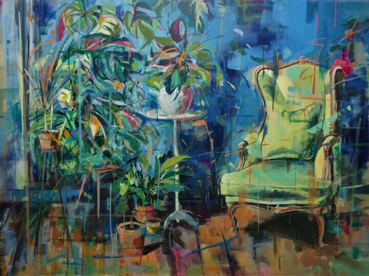 Это была коллекция портретов с большим количеством свежести и свободных мазков. Меня очень интересовала человеческая фигура. Затем я сделал серию Ambientes (Окружающая среда), где я работал над интерьерами, сочетая мебель с растительностью. Это очень красочные реалистические работы, выражающие тайну одиночества, это пустые комнаты. Далее серия Tropicalia, в которой появляются сказочные миры джунглей, растительность, обилие зелени и попугаев, много попугаев. От тех серий почти ничего не осталось, это были очень плодовитые периоды и, к счастью, с успехом в продажах.