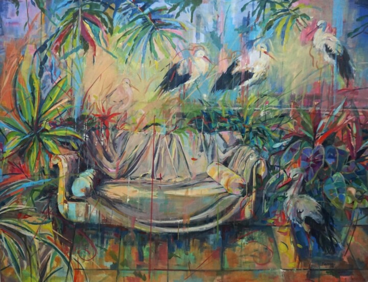 Сейчас я работаю над серией Paraísos. Это идиллические вселенные, где царит мир и могут распространяться мечты. Здесь много цвета, растительности, придуманных пейзажей и множество птиц.