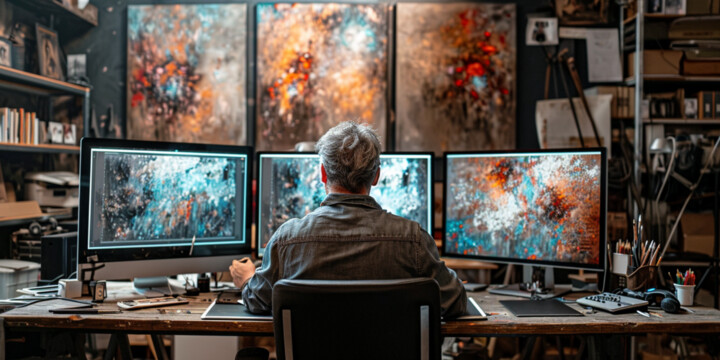 В своей студии я использую передовые инструменты цифрового дизайна, включая искусственный интеллект, для исследования и развития этих идей. ИИ помогает мне экспериментировать с композициями, цветами и текстурами способами, выходящими за пределы традиционного человеческого творчества. Например, я могу использовать алгоритмы искусственного интеллекта для автоматического создания вариантов идеи или предложения новых художественных перспектив. Такой подход позволяет мне исследовать широкий спектр творческих возможностей за гораздо более короткое время.