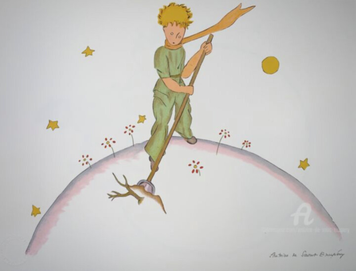 Антуан Де Сент-Экзюпери, «Маленький принц на планете», 2009. Эстамп, 31 x 40 см.