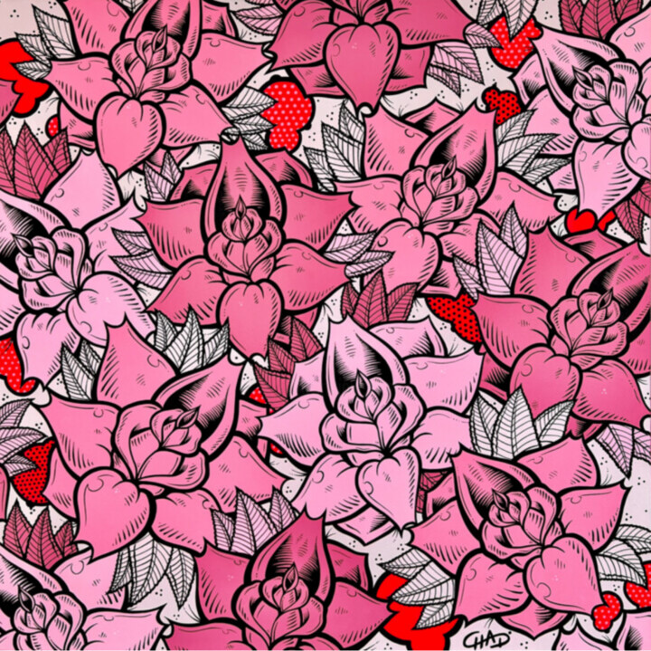 «Дюжина розовых» (2024) — яркая картина Чада Каротерса, написанная акрилом на холсте. Эта работа является частью новой серии, в которой представлены ее фирменные розы, причем каждое полотно украшено дюжиной тщательно выполненных цветов. Картина, в которой преобладают различные оттенки розового, передает нежную красоту роз, застывшую во времени. Повторение элементов и яркая цветовая палитра отражают суть поп-арта, проводя параллели с культовым использованием повторяющихся узоров и смелых оттенков. Хотя это картина от руки, ее точное повторение и яркость могут заставить поверить, что это трафаретная печать, напоминающая знаменитые работы Энди Уорхола. Способность Карозерса сочетать сюрреалистические и реальные элементы в этой работе демонстрирует его уникальный подход к современному поп-арту, превращая повседневные цветочные образы в необыкновенный визуальный опыт.