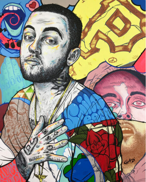 Smile Back (2018) — это искренняя дань уважения Чаду Карозерсу, также известному как Чад Кантколор, выполненная акрилом на холсте. Это произведение в стиле поп-арт отдает дань уважения покойному рэперу Маку Миллеру, запечатлевая его безмятежное выражение лица на ярком и динамичном фоне. Холст наполнен скрытыми «пасхальными яйцами», которые отсылают к важным моментам в карьере Миллера, добавляя новые смыслы для тех, кто знаком с его работами. Эта картина, висящая в студии Карозерса как личное напоминание о необходимости упорства, иллюстрирует суть поп-арта, сочетая современные культурные символы со смелым, эмоциональным искусством. Подобно работам Энди Уорхола и Роя Лихтенштейна, Каротерс использует повторы и яркие цвета, чтобы прославить и увековечить деятеля популярной культуры, превращая его дань уважения в вневременное произведение, которое находит отклик как у поклонников, так и у энтузиастов искусства.