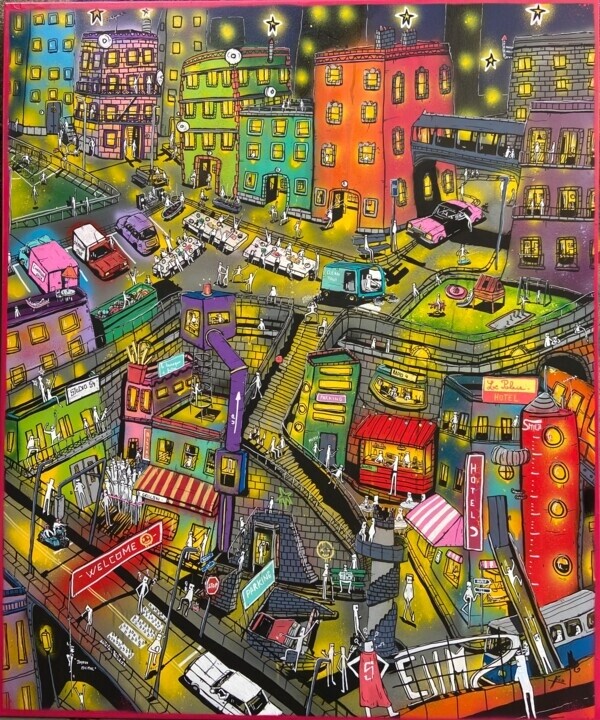 Я вижу свои картины как кинокадр. Мои картины должны оживать в сознании людей, которые на них смотрят. Я использую юмор и бурлеск, чтобы привлечь внимание, пробудить любопытство и захватить воображение каждого. Мне нравится грубая, аутентичная сторона города, в которую встроены мои персонажи.