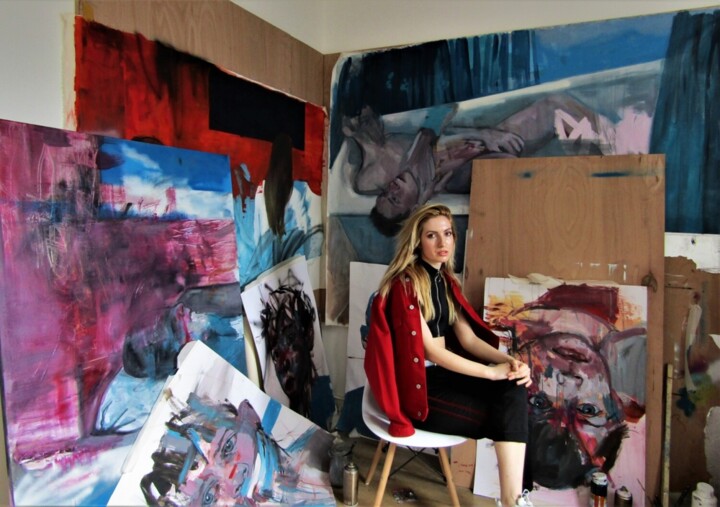 Я создаю свои картины в частной студии в Лондоне. Мне нравится проводить там все свое время, размышляя и работая над новыми идеями. Моя рутина мастерской начинается с небольшого количества набросков и/или чтения утром и после того, как я соберу материалы и приступлю к работе. Помимо картин, в моей мастерской есть небольшая коллекция книг, в основном литература, и альбомы по искусству, много художественных материалов и небольшой кабинет.