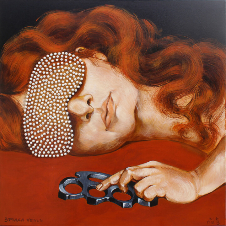 На главной даме маска, камин из искусственного жемчуга, какой носят бунтующие женщины, и она со своей любимой стервой, в оригинале героиня носит нитку черного жемчуга. Это также мой автопортрет с моей сучкой. Эта картина написана в традициях поп-арта и уличного искусства. Знаковая картина, одна из самых ценных польских коллекций. Я также написал интерпретацию «Девушки с жемчужиной», которая отсылает к шедевру «Девушка с жемчужиной» Иоганна Вермеера, и одноименную интерпретацию «Спящей Венеры» итальянского художника эпохи Возрождения Джорджоне. Все эти картины доступны в Галерее.