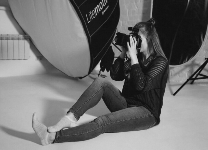 Я фотографирую в проверенных фотостудиях, где есть необходимое мне освещение и реквизит. Например, мало где есть возможность безопасного подвешивания циркового реквизита (воздушное кольцо, полотна).