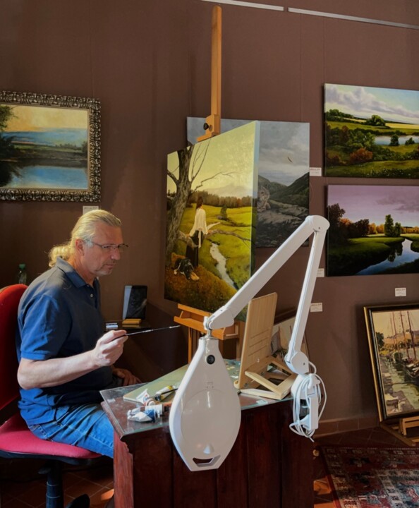 У меня есть своя галерея. Я рисую прямо в галерее, которая одновременно является и моей мастерской. Так что заинтересованные посетители могут увидеть не только готовые картины, но и мои работы в процессе.