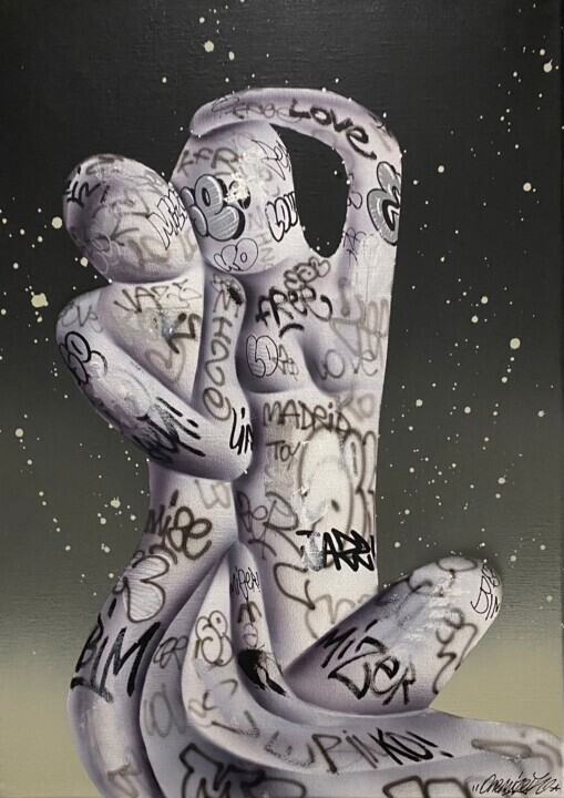 Онемайзер — Влюбленные (2021). Акрил и аэрозольная краска на холсте. 55 х 40 см.