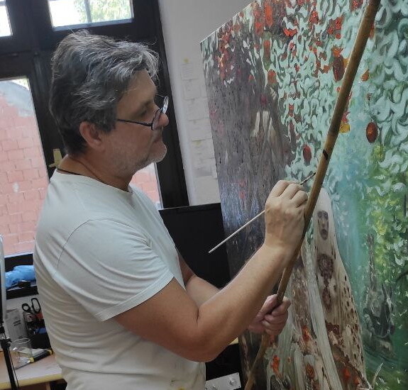 Я выпускник Московской Академии Полиграфии. Я профессиональный иллюстратор. Некоторое время я иллюстрировал детские книги и романы. Но позже я понял, что мне не хватает свободы самовыражения. Иллюстратор зависит от текста и издателя, и это меня не устраивало. Поэтому я решил стать художником-фрилансером, чтобы иметь возможность выражать свои мысли в своих работах. Мне потребовалось много времени, чтобы найти свой стиль и тему. Я экспериментировал с разными техниками: акварелью, тушью, акрилом и смешанной техникой. Но в итоге я остановился на холсте, масле. Эта техника позволяет мне размышлять о том, что я вижу в своем воображении. Мне всегда нравилось писать фигуративные, сюжетные картины. В поисках своего стиля я написал несколько картин в стиле сюрреализма, символизма и магического реализма. Но в конце концов я понял, что не хочу, чтобы меня ограничивали какие-либо направления. Так я открыл для себя свое направление, которое включало в себя все, что я хотел использовать: сюрреализм, символизм, абстракцию, реализм, экспрессионизм и все остальное, что мне нужно, чтобы точнее передать свою идею в картине. Я назвал свой стиль « Субъективный реализм » .